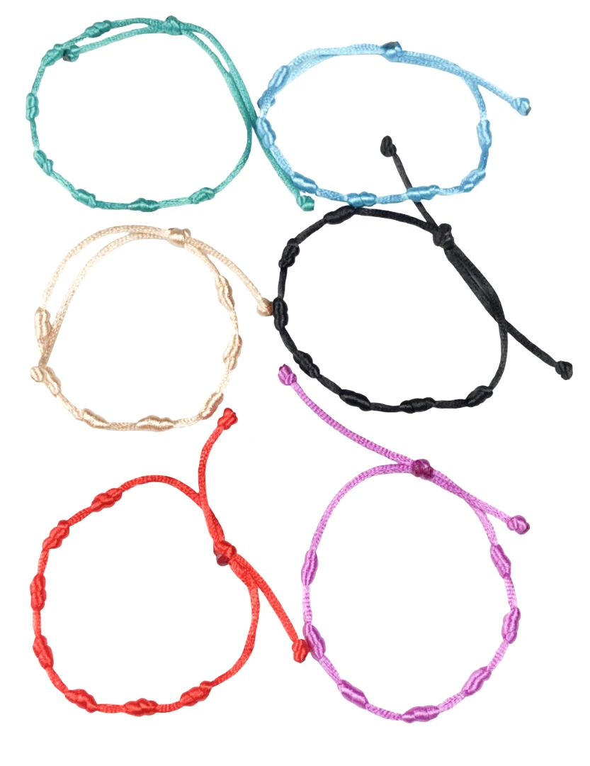 La pulsera de protección clásica, hecha con cordón de seda. Súper discreta y fácil de combinar. Viene en varios colores: rojo, lila, beige, celeste, verde agua o negro. ¡Se ajusta a tu medida!
